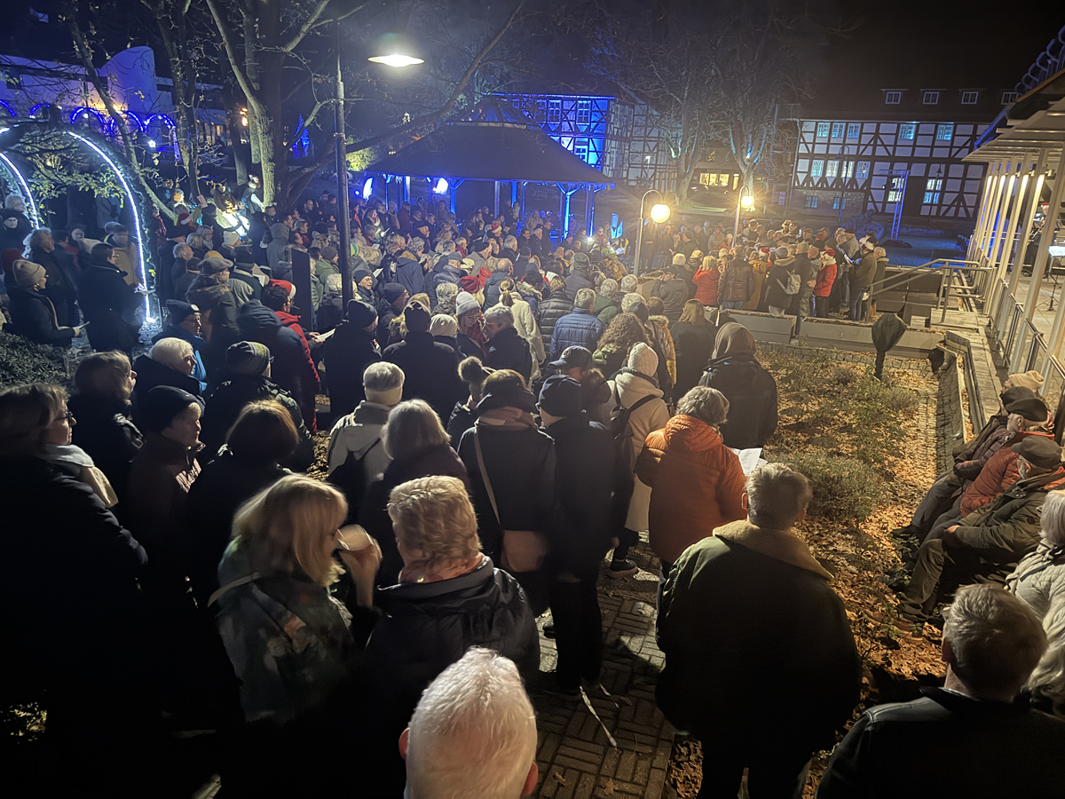 Eine stimmungsvolle Atmosphäre erfüllte am Abend des 16. Dezembers den Rosengarten in Salzgitter-Bad, als rund 200 Bürgerinnen und Bürger zusammenkamen, um gemeinsam Weihnachtslieder zu singen. Unter freiem Himmel erklangen bekannte klassische Weihnachtslieder wie „O Tannenbaum“ oder „Alle Jahre wieder“ ebenso wie moderne Klassiker und sorgten für vorweihnachtliche Freude bei Jung und Alt. Trotz der kühlen Temperaturen ließen sich die Teilnehmer die gute Laune nicht nehmen. Warm eingepackt sangen sie aus voller Stimme und genossen das gemeinschaftliche Erlebnis.